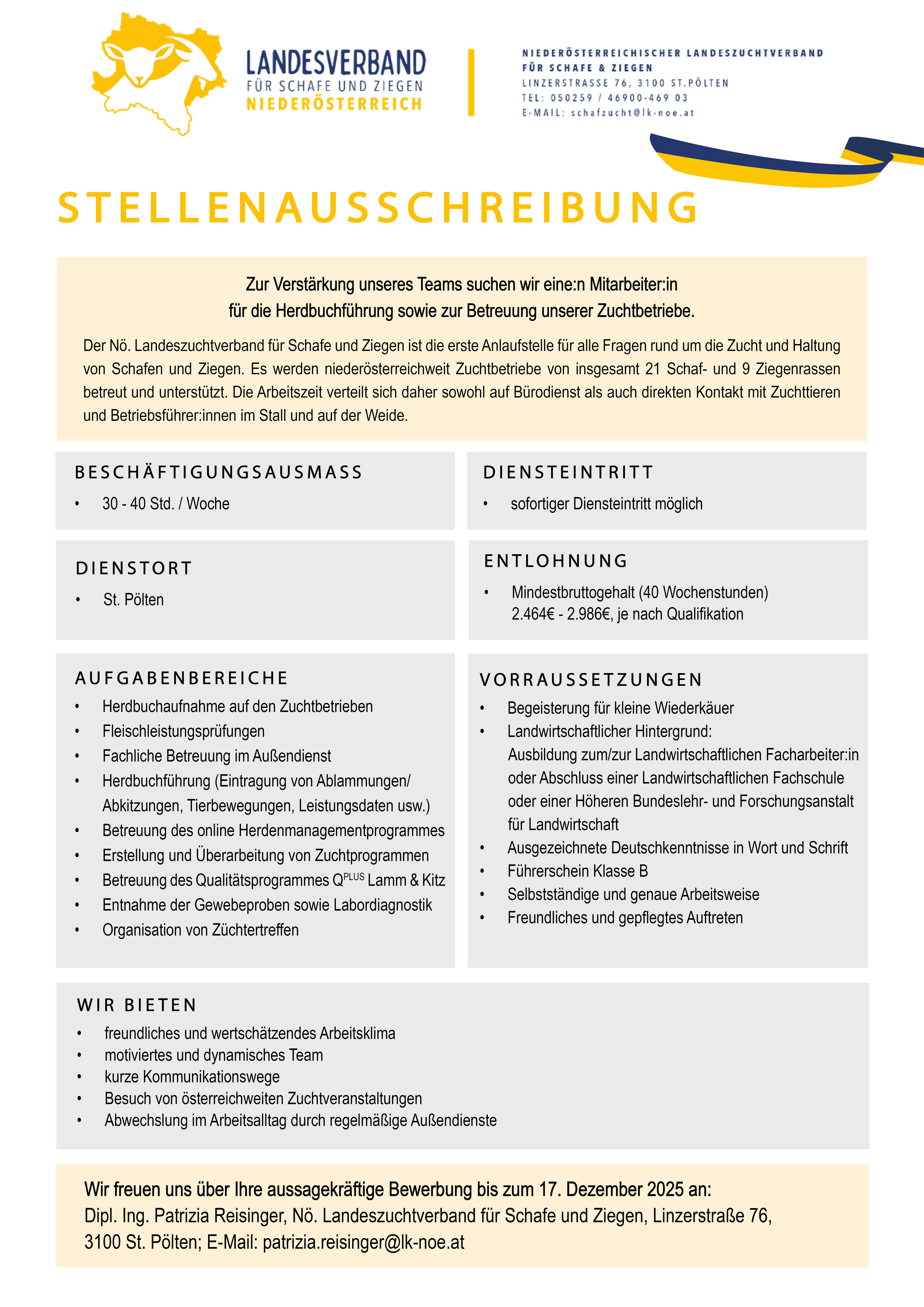 Zur Verstärkung unseres Teams suchen wir eine:n Mitarbeiter:in für die Herdbuchführung sowie zur Betreuung unserer Zuchtbetriebe.